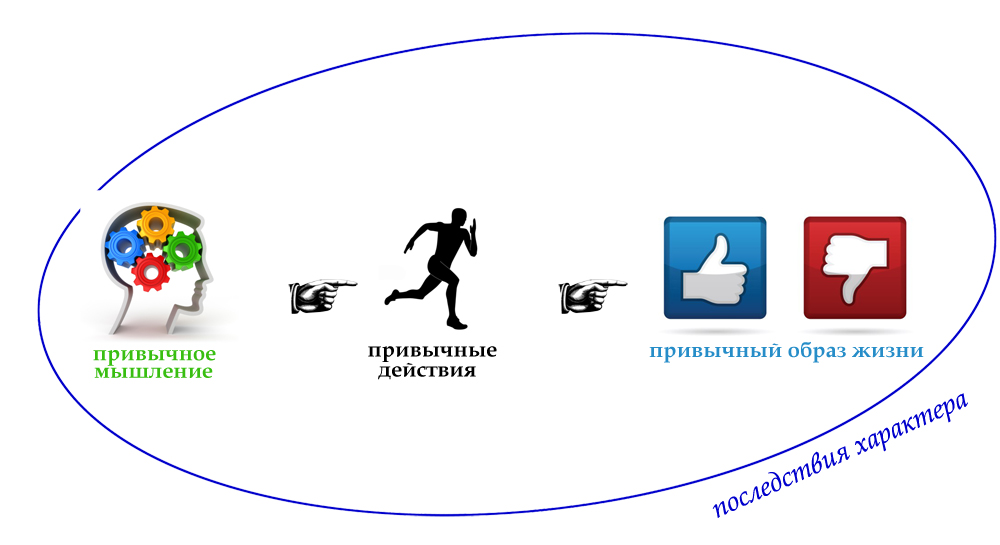 Привычный образ жизни - привычка повторять одни и те же действия. Совершение одних и тех же действий приводит к одним и тем же результатам. Тебе может не нравиться твой образ жизни, но ты не можешь его изменить, потому что проблема глубже - привычные действия являются следствием привычных мыслей, а привычные мысли производятся нейронными сетями, сформированными в детстве. Поэтому для изменения образа жизни необходима терапия детства.
